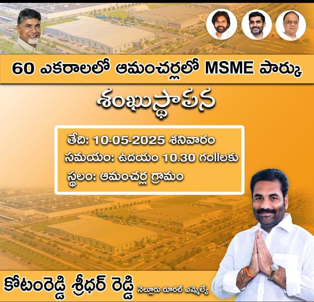 నెల్లూరు అభివృద్ధికి నూతన నాంది ఆమంచర్లలో 60 ఎకరాల్లో MSME పార్క్