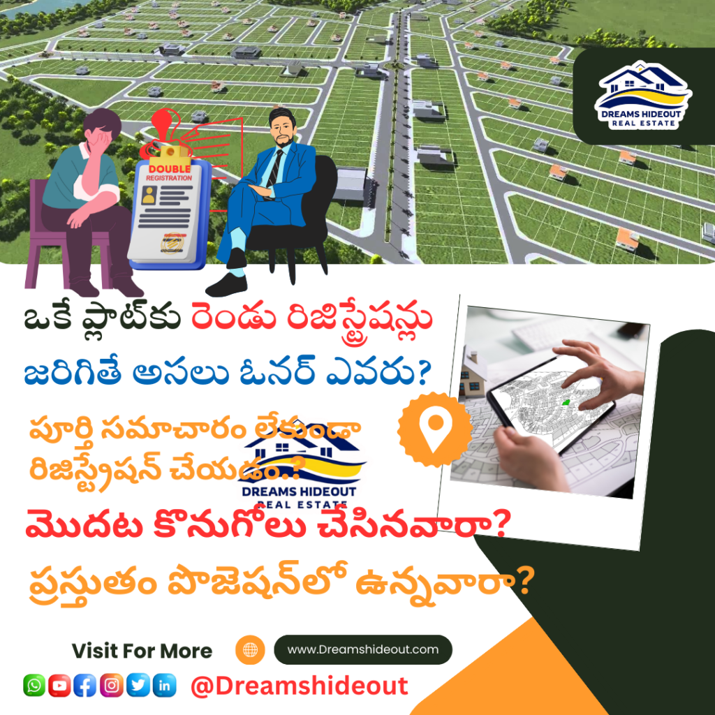 –👉 ఒకే ప్లాట్ / ఒకే స్థలం రెండు సార్లు రిజిస్ట్రేషన్ అవడం.ఇలా జరిగితే అసలు ఓనర్ ఎవరు?మొదట కొనుగోలు చేసినవారా?లేదా ప్రస్తుతం పొజెషన్‌లో ఉన్నవారా?ఈ సందేహానికి సమాధానం చట్టంలో చాలా క్లియర్‌గా ఉంది.ఈ బ్లాగ్‌లో మీరు పూర్తిగా అర్థం చేసుకుంటారు.